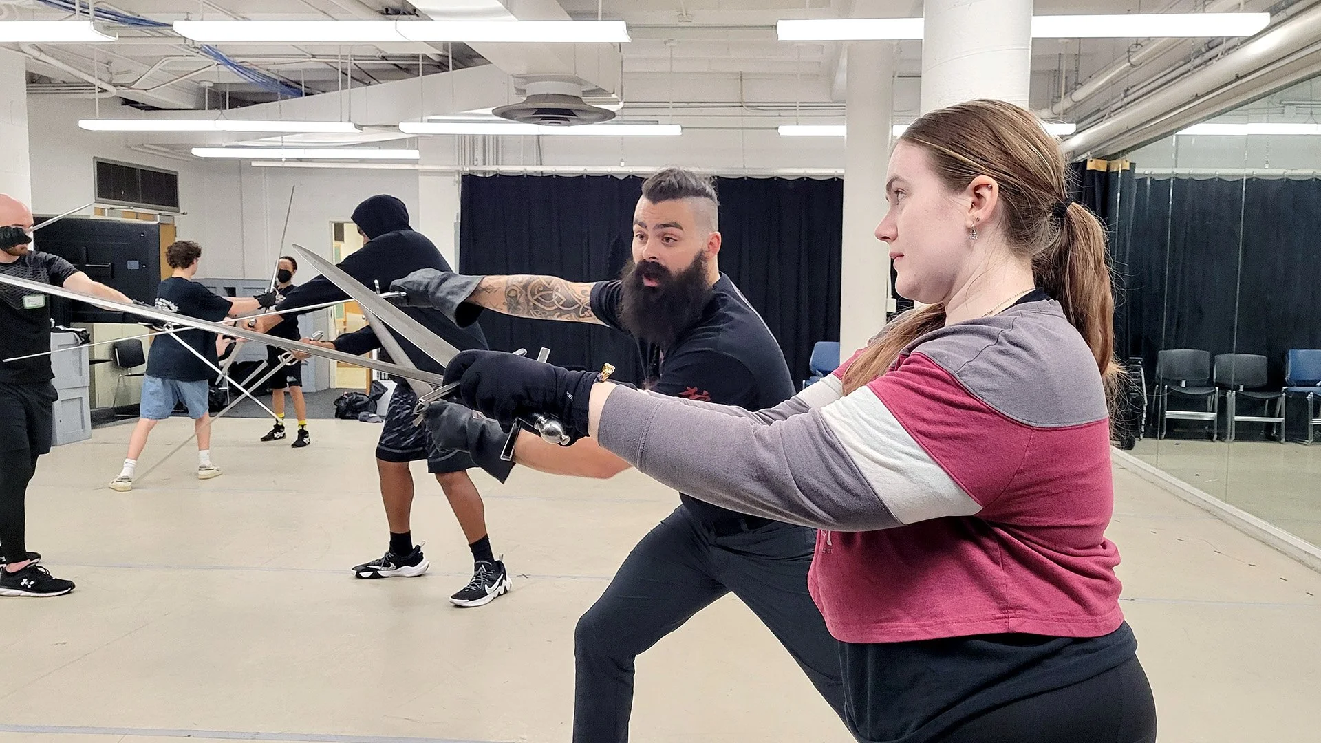 Dr. Heather Melville is a member of the Society for American Fight Directors, with SPTs completed in Quarterstaff, Single Sword, and Unarmed, as well as Firearms. In her other roles, she is a doctorally educated nurse, lecturer, fire spinner, artist, and writer, because she deals with boredom / having time to eat and sleep by finding another cool thing to go do. She has been lucky enough to train with amazing teachers and is overjoyed that other folks will be able to have similar experiences this weekend.